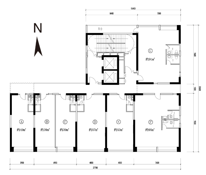 平層:約39-95㎡精裝SOHO