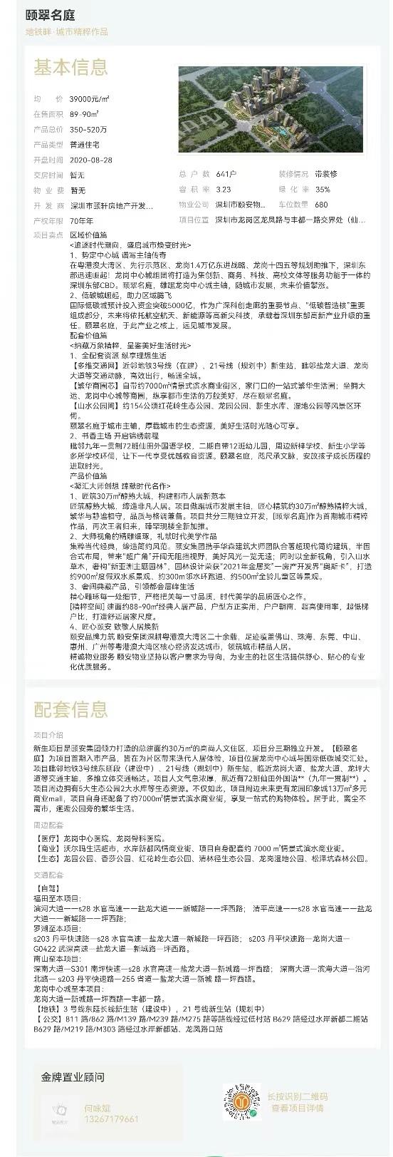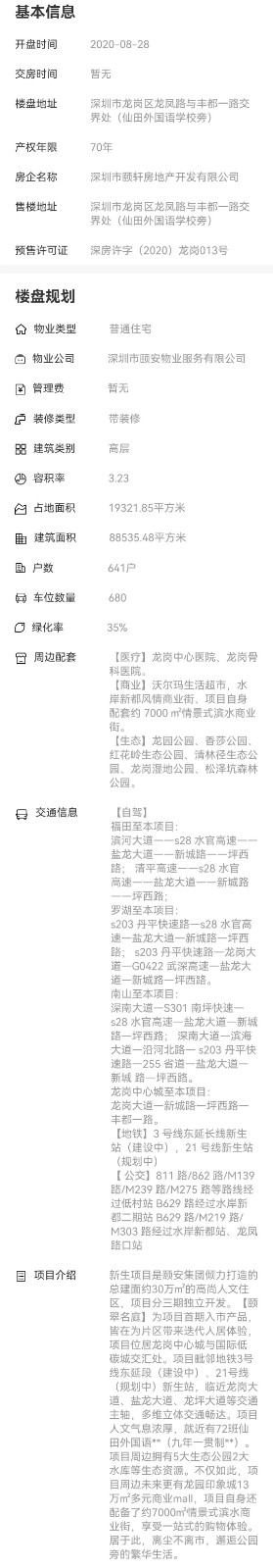 區域:深圳市龍崗區龍鳳路與豐都一路交界處(仙田外國語學校旁 最新開盤:2020-08-20