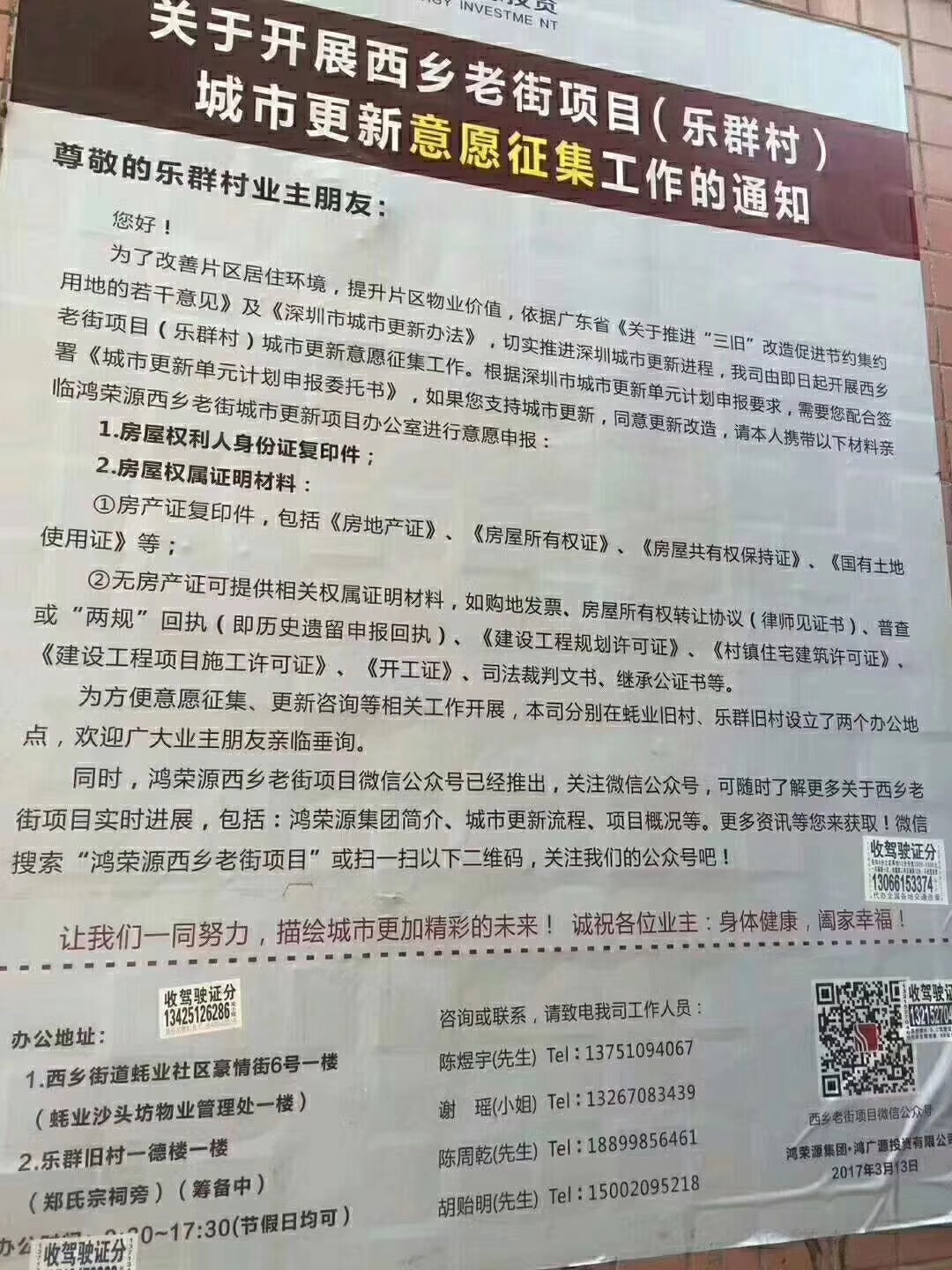 購房后馬上可登記舊改手續(xù)!鴻榮源征收