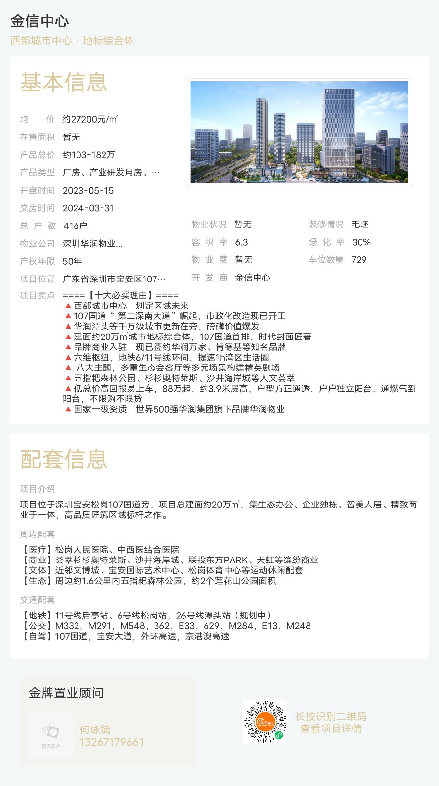 樓盤:金信中心物業類型:廠房、產業研發用房、宿舍戶型:2室、3室面積:約38 35-48 83平米總價:約103-182萬聯系人:何詠斌聯系電話:13267179661