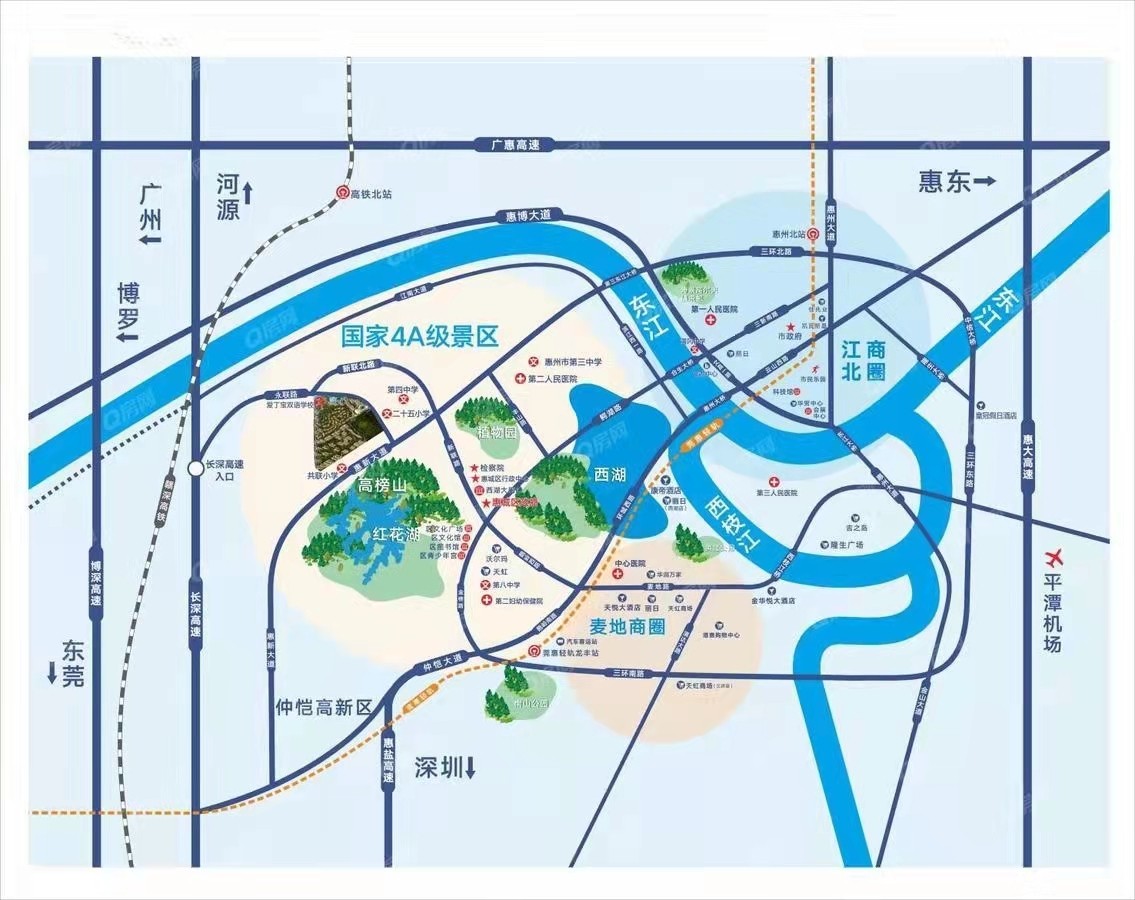 2、 高榜山、紅花湖,私藏一城自然資源,在惠州西筑家,把高榜山、紅花湖納為后花園,享受生態(tài)圈清新空氣和靜謐,尊貴居住無可比擬。近長深高速火車西站出口,快速通達深圳、東莞、廣東。永聯(lián)路北段八車道,南段雙向六車道即將全部完工通車。此外雙向八車道的新聯(lián)北路也在快速建設中。